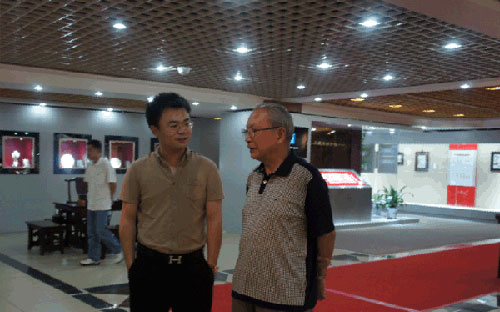 中國(guó)工藝美術(shù)大師王隆夫(右)同藏樂(lè)閣總經(jīng)理彭鵬(左)在進(jìn)行交談