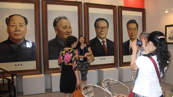 一位93歲高齡身體硬朗的江西臨川老人在《四大偉人》瓷板畫肖像前久久凝望,筆者奉茶請(qǐng)其入座攀談起來,在詢問其家鄉(xiāng)為何地時(shí)老者隆重是客家話使筆者頗為費(fèi)解,他拿出了身份證向筆者示意,身份證赫然顯示他是一位超出我黨年齡的老者。臨別時(shí)得知筆者是鄧小平家鄉(xiāng)的人時(shí)向筆者樹起了大拇指。