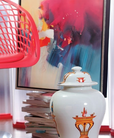 瓷器控的休閑角落,更應布置得文雅一些,添置一件應景且實用的瓷器,可以裝東西的將軍甕就不錯。如這款改良風格將軍甕,既有著中式的情懷,金色西洋王冠圖案又賦予其一種西式宮廷的奢華感,里面可以收納下一大堆零嘴吃食。
