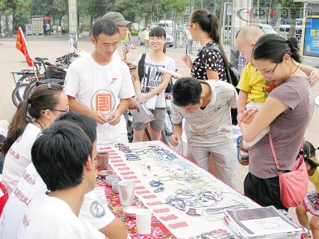 昨日上午10時(shí),13名來自景德鎮(zhèn)陶瓷學(xué)院的學(xué)生推著自行車在緯二街十字的文化新天地,進(jìn)行義賣現(xiàn)場(chǎng)的布置。記者看到,義賣的物品都是些陶瓷制品,“這些物品都是愛心人士捐助的。”正在一邊忙碌的隊(duì)員馬賽說,從6月中旬開始,隊(duì)員就著手準(zhǔn)備義賣,開始向社會(huì)進(jìn)行募捐。