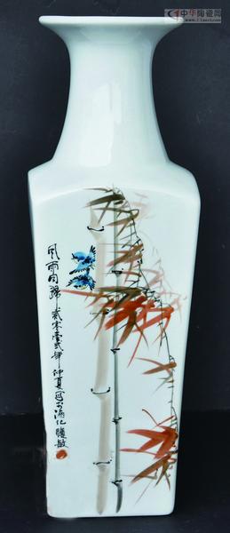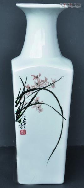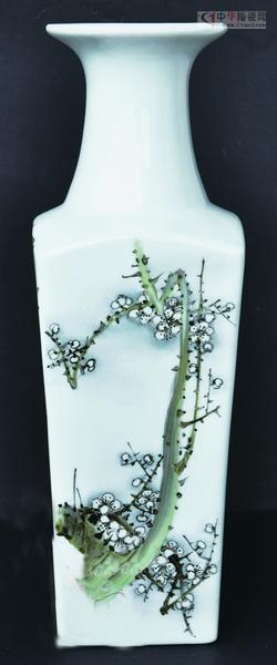 中國畫中的梅、蘭、竹、菊“四君子”常被用來表現(xiàn)清高脫俗的情趣,其君子之風(fēng)更為歷來的國畫家所偏愛。黃聰敏先生的寫意花鳥瓷畫“四君子”,風(fēng)格注重傳統(tǒng)的筆墨意趣,但不沿襲前人的模式,而是以現(xiàn)代審美視角,把畫面情景置于特定的歷史氛圍之中,著重表現(xiàn)“四君子”多彩的自然生命活力,在創(chuàng)作中追求詩意畫境,講究筆情墨趣,于虛實相間中創(chuàng)造空間美: