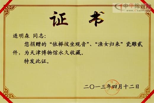日前,泉州市工藝美術(shù)大師連明森創(chuàng)作的兩件瓷雕作品,《依櫸披坐觀音》和《漁女歸來(lái)》獲天津博物館永久收藏。