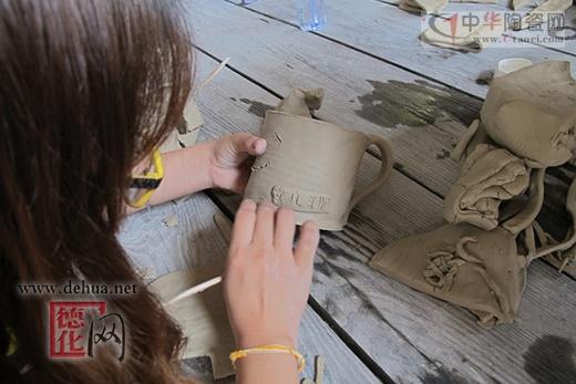 來自緬甸曼德勒的莫君珊小心翼翼地在自制陶杯上刻出“女兒珊”的字樣。