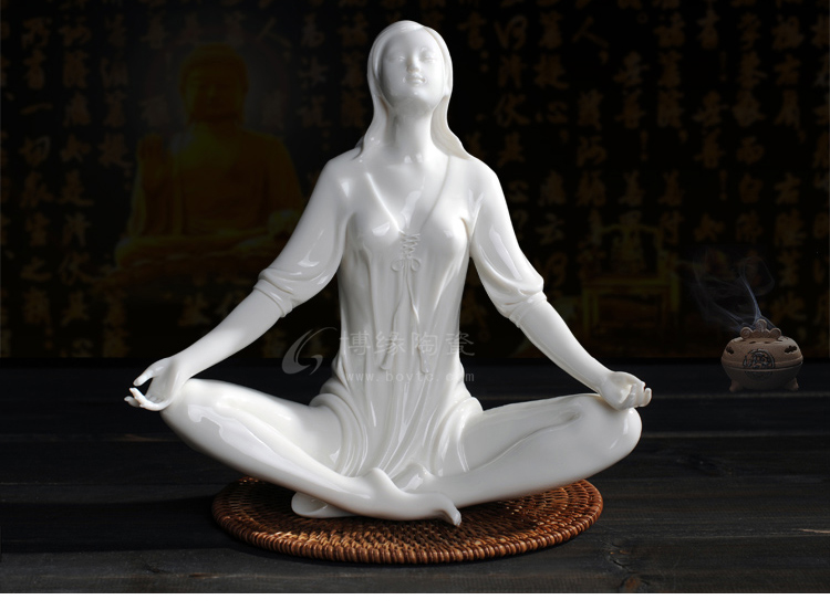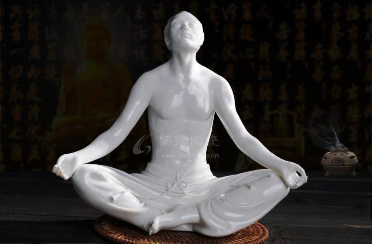 這就是不滿足于停留在傳承層面上,而是不斷開闊自己的眼界與識(shí)度,自覺地在文化修養(yǎng)、社會(huì)活動(dòng)與人生閱歷等方面充實(shí)自己,形成自己更加開放的心境與更加豁達(dá)的胸懷,形成從工到藝、以藝帶工的思想升華,從而走出一條具有鮮明時(shí)代特征與個(gè)性情懷的瓷塑創(chuàng)造之途。《禪心》系列作品便是在傳統(tǒng)之余的創(chuàng)新之作。人物盤膝而坐,雙手?jǐn)傞_輕輕放在膝蓋上,頭微仰面向天空,眼睛微閉,靜心之意撲面而來。此作品借鑒了瑜伽的姿勢(shì)造型,卻在精雕細(xì)刻與抽象寫意之間相生相融,相輔相成。