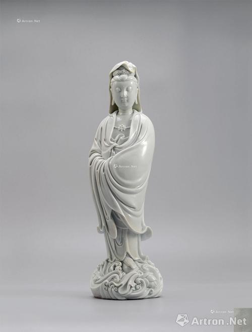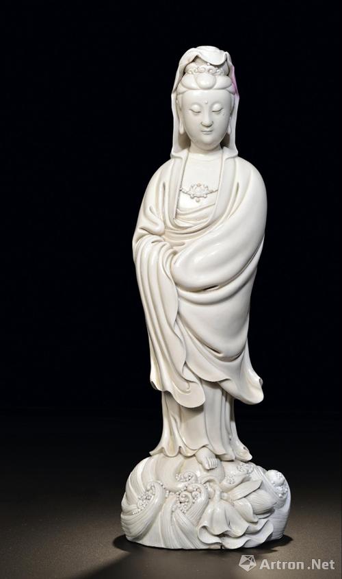 明代后期以來,至清代,德化窯以塑像聞名于世,特別是觀音、達摩、關(guān)公、文昌君等佛道人物,神情生動,刻畫細致入微,觀音為福建德化窯白釉品種中最著名的塑像題材,然而觀音題材仍以坐像為主,觀音立像在德化觀音品種中所占比例較少,且精品更甚。