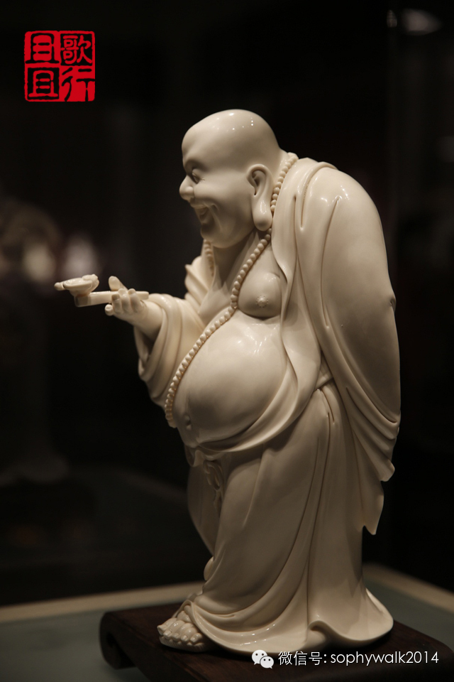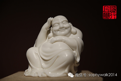 立巖笑佛 象牙白瓷 高43厘米,長(zhǎng)21厘米,寬14厘米 2001年