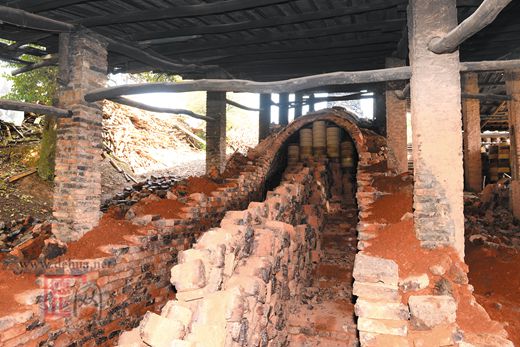 “龍窯燒制最高溫度可達(dá)1300多攝氏度,熱脹冷縮和高溫熔融等因素,會(huì)讓龍窯變形甚至坍塌,使用一段時(shí)間后需要進(jìn)行大修。” 顏瑞柔向我們介紹,一般大修一次可以燒120次窯,由于現(xiàn)在的企業(yè)都改用電窯或汽窯,柴燒的月記窯使用率相對(duì)不高,一年也就10多次,這次重修的是窯頭和窯身,窯尾是六年前重修的,仍完好無(wú)損。