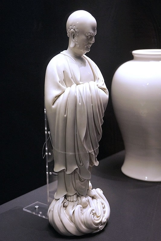 故宮博物院自20世紀(jì)50年代設(shè)立陶瓷陳列專館以來,一直都開辟明代德化窯瓷器陳列專柜,所展出的德化窯“何朝宗款”白釉達摩立像、觀音像等,經(jīng)常引來大批中外游客駐足觀看,贏得他們交口稱贊。