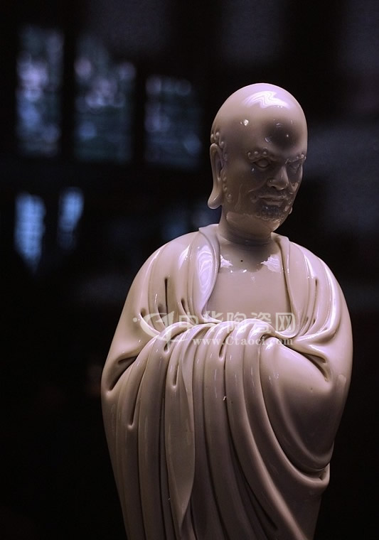 2014年11月26日,香港佳士得2014年秋拍“重要中國瓷器及工藝精品”專場在香港會議展覽中心舉槌。以其類似的作品,明16世紀(jì)德化白釉達摩立像以1444萬港元成交。