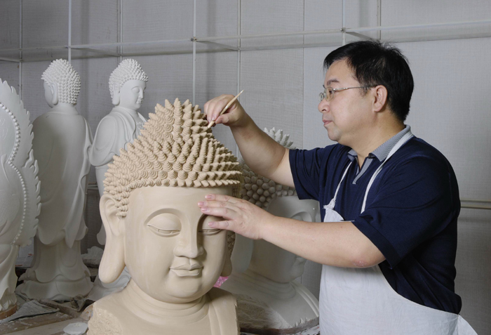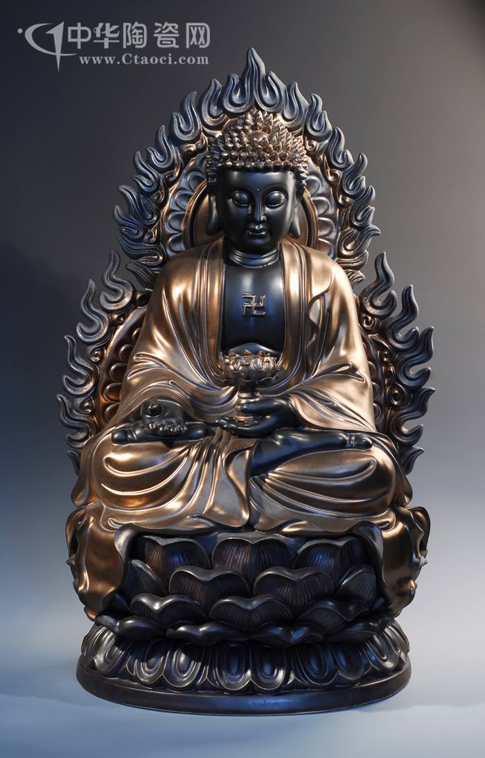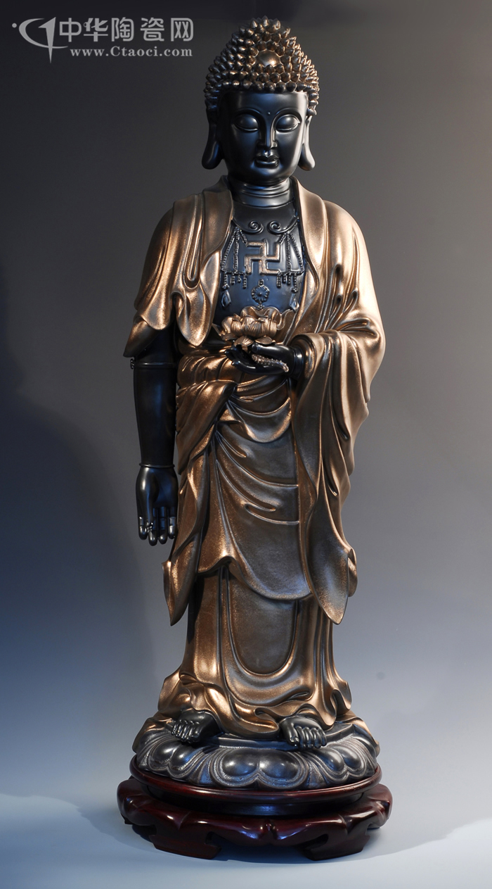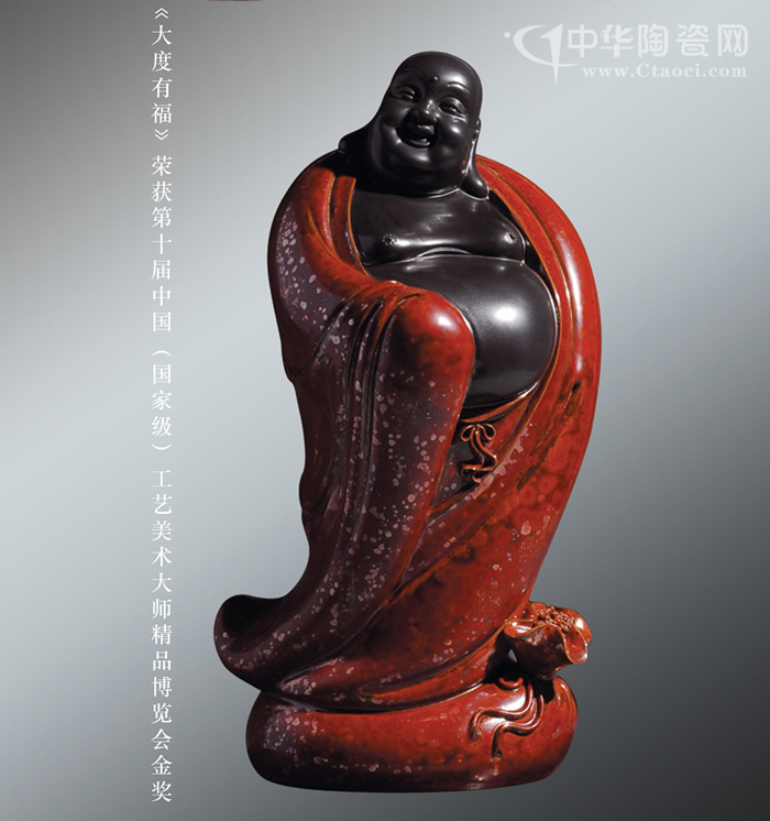 其作品堅(jiān)持走創(chuàng)新路,融禪心于陶瓷藝術(shù)中,融合“佛像”、“茶道”、“香道”、“花道”,彰顯禪藝術(shù)。