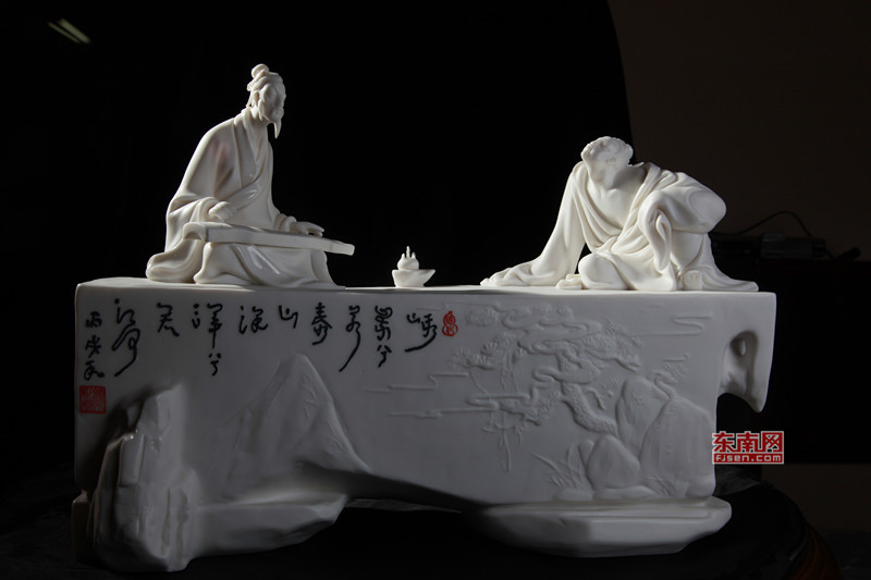 盡管如此,他還是沒(méi)有放棄對(duì)此類(lèi)作品的孜孜以求,“這種溫雅的泥性天生便散發(fā)著文藝范”,他說(shuō)自己作品滲透出的文人氣質(zhì)和人性光輝,是德化瓷土的泥性使然。