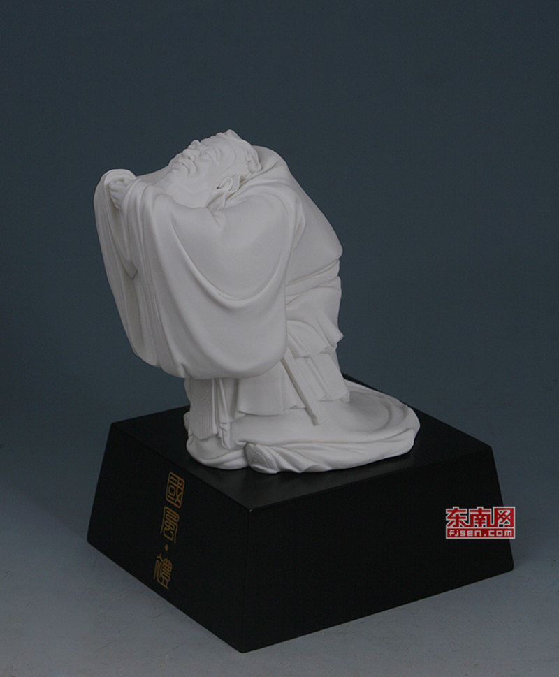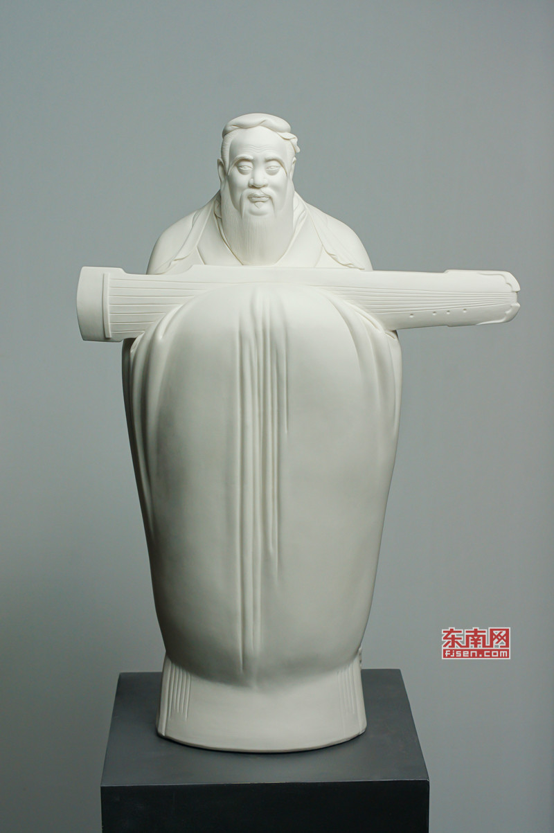 于是,評(píng)委們看到了一尊別具一格的孔子瓷塑:一身長(zhǎng)衫的孔夫子仍然是拱手于前,但是長(zhǎng)袖之上,拱托著一把古琴,將這位至圣先師傳禮樂(lè)于天下的迫切心愿,活脫脫地刻劃出來(lái)!