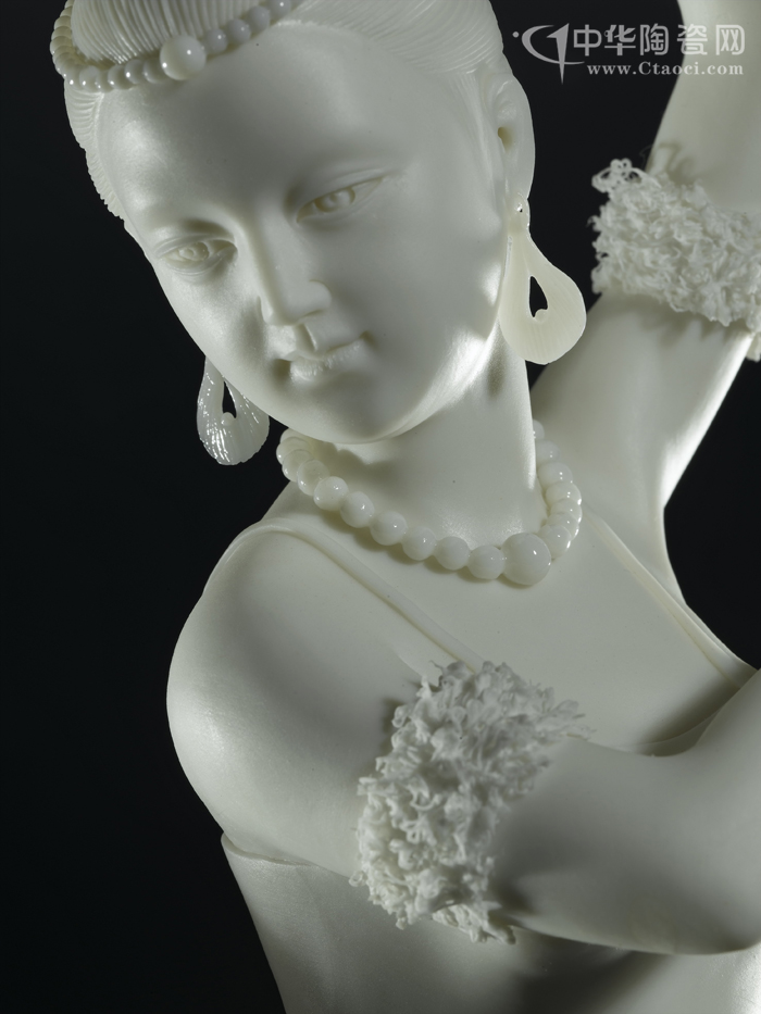 走進(jìn)蘇志強(qiáng)所創(chuàng)立的云姿陶瓷研究所,一件件精美的陶瓷映入眼簾,靈活的雙眼、纖細(xì)的雙手、精致的菊花、牡丹等,不禁令人感嘆這精湛的工藝,鬼斧神工、妙趣橫生!風(fēng)華正茂的少女,在蘇志強(qiáng)的瓷刀下更是惟妙惟肖,或利用舞蹈展現(xiàn)女性的靈性;或透過勞動(dòng)體現(xiàn)女性的賢德淑良;或通過吹拉彈唱來演繹女性的空靈……