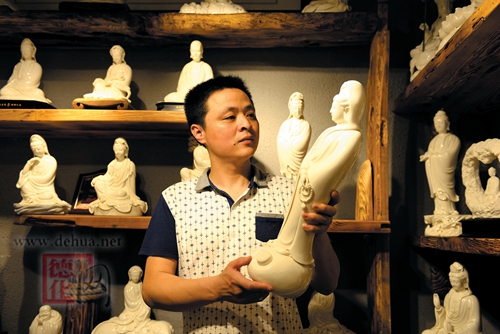 1982年出生的林建平,自幼酷愛陶瓷,18歲開始學習陶瓷雕塑技藝。經(jīng)過十多年的學習,他2012年自立門戶,創(chuàng)辦了“德化縣建平瓷藝研究所”。