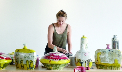 展覽共匯聚了中外28位藝術(shù)家的作品。談到此次活動(dòng)為何選擇在德化進(jìn)行集體創(chuàng)作,藝術(shù)中國(guó)主任勾霞說(shuō):“德化是中國(guó)的瓷都之一。當(dāng)今的藝術(shù)形式多樣,這么多不同文化背景和文化經(jīng)驗(yàn)的藝術(shù)家在一起創(chuàng)作,作品的多種可能性是我們期待的,加上窯變的不可控和偶然性更是陶藝的魅力所在。”創(chuàng)作中,萬(wàn)旗藝術(shù)中心的手拉坯師傅幫德國(guó)藝術(shù)家Alke修整坯體,師傅的嫻熟技藝讓Alke贊不絕口。藝術(shù)家唐承華在戶外空曠的地面上擺上石塊,陶坯立于其上,周圍架滿長(zhǎng)條狀的柴火,形成原始的燒窯空間。他在點(diǎn)火之前,將每個(gè)人的酒杯斟上酒,敬天、敬地、敬火。唐承華說(shuō)這件名為《天堂》的作品,意在表現(xiàn)燒制的過(guò)程。而荷蘭藝術(shù)家Nicole Donkers是一位影像藝術(shù)家,此次創(chuàng)作她將日常用的物品如拖鞋、水舀、衣架、漱口杯放置在陶瓷上,呈現(xiàn)出一種當(dāng)代的觀點(diǎn)。