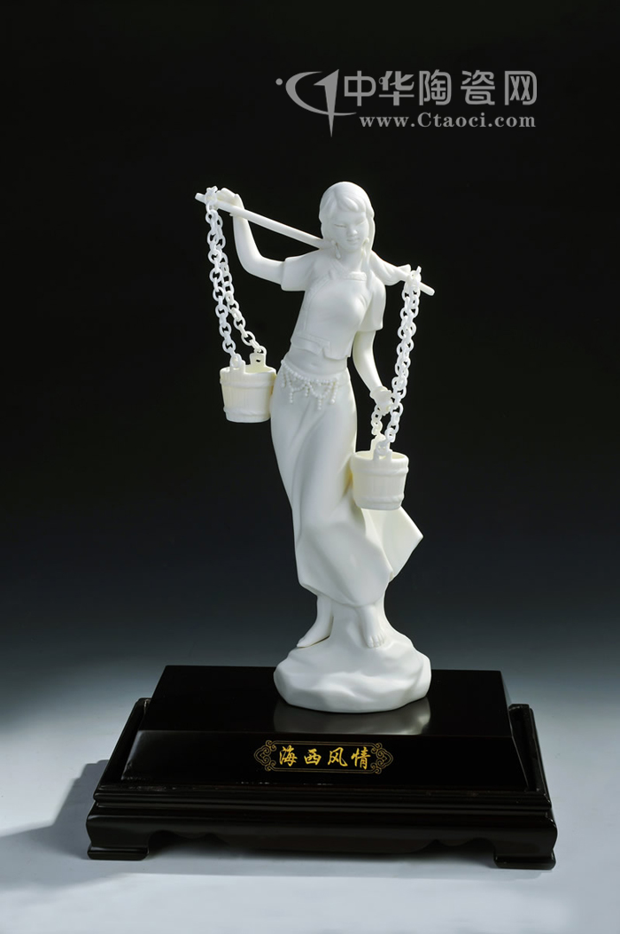簡介:第七屆中國工藝美術(shù)大師精品博覽會”優(yōu)秀獎,以德化溫潤如玉的建白瓷為胎體,瓷質(zhì)潤如脂、晶瑩碧剔,以少女為主角,一手撫耳,作聽裝,一手持斗笠,姿態(tài)婀娜,楚楚動人。