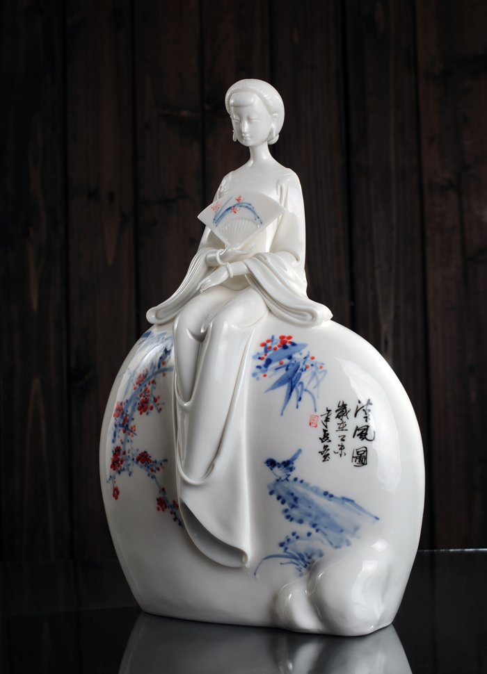 作品簡介:《清風(fēng)明月》以德化優(yōu)質(zhì)的白瓷為材料,運(yùn)用極其概括的藝術(shù)手法,表現(xiàn)女子的清雅閑適,清涼的風(fēng),明朗的月,一切都恰到好處。