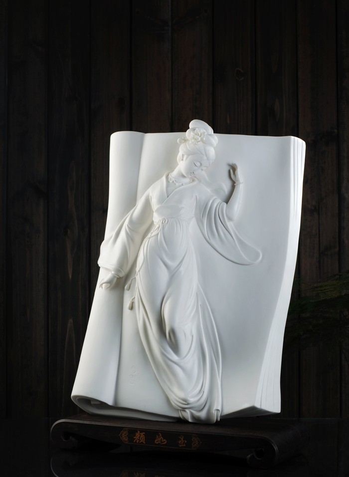 作品簡介:打開的書籍中翩然一仙子。書的方形線條與人物的迷人曲線對比,形成動靜張力的視覺沖擊;人物的神情、動態(tài)、衣裙傳達(dá)出東方女子的溫柔閑雅、清淡秀媚、如詩如畫。作品獲第四屆福建省陶瓷藝術(shù)設(shè)計創(chuàng)新評比銀獎,入圍首屆南通國際當(dāng)代工藝美術(shù)雙年展,獲中國陶瓷藝術(shù)大展暨第十屆全國陶瓷藝術(shù)創(chuàng)新評比銅獎。