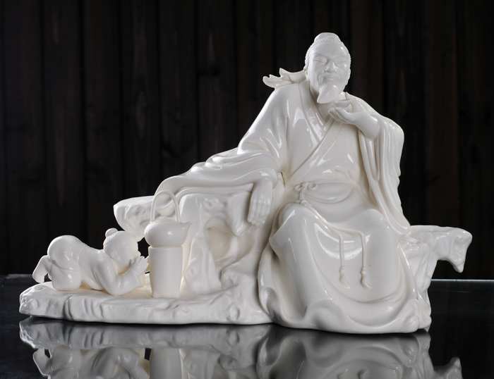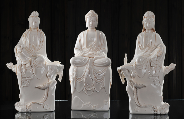 作品簡介:西方三圣顯現(xiàn)的特征,特令眾生容易觀想,容易憶念。譬如我們對于父母和兄弟姊妹,無論相距若干里,相隔若干年,每一閉目憶想,他們的面型毛發(fā)皆現(xiàn),如在目前。何以故?久習(xí)熟知其特征,且天性相關(guān),深印識田!段鞣饺ァ防^承了瓷都千年來的傳統(tǒng)雕塑技術(shù),形成了自己獨(dú)特的藝術(shù)風(fēng)格,產(chǎn)品潔白堅硬、色澤瑩潤、胎體滑潤致密。釉面晶瑩光亮,是中國白德化白瓷器之尚品,東方之珍品瓷。