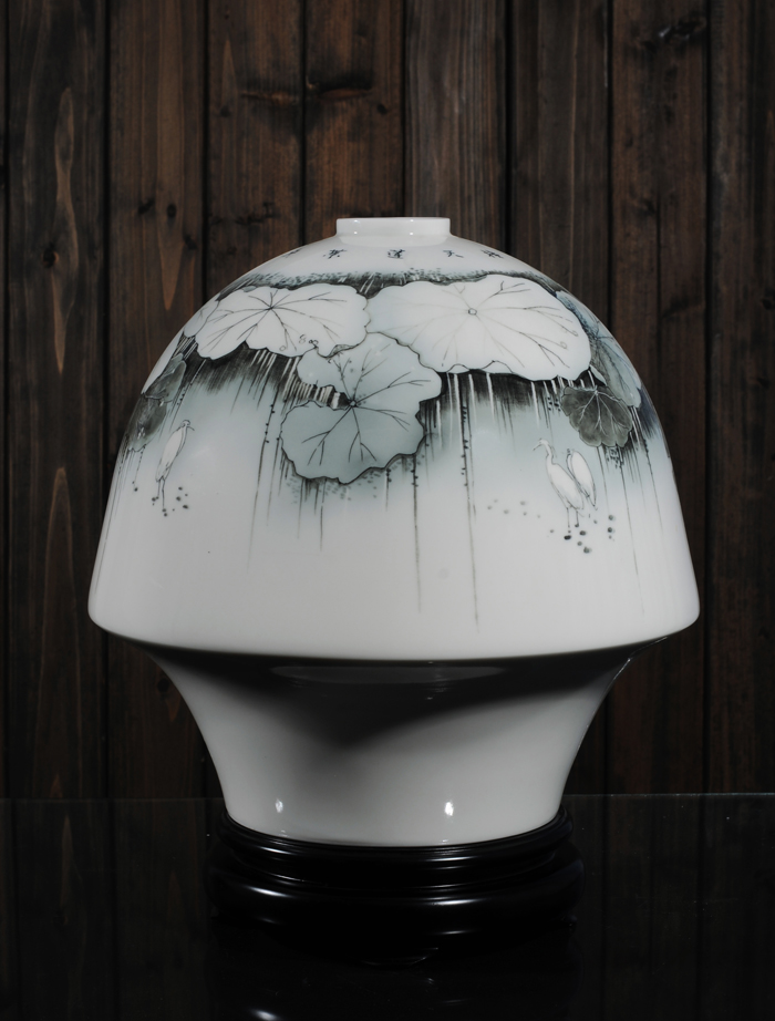 作品簡介:瓷畫是在書畫的基礎(chǔ)上發(fā)展起來的一門藝術(shù),它融瓷器工藝與書畫藝術(shù)為一體,既顯示了畫家的藝術(shù)水平,也展示了工匠的高超技藝。它不是藝術(shù)品單純的復(fù)制和搬用,而是采用多種工藝進(jìn)行制作,精工細(xì)雕,一絲不茍,從而使其達(dá)到了毛筆在宣紙上作畫的筆墨效果和韻味。《接天蓮葉無窮碧》以白瓷以底,筆鋒由濃轉(zhuǎn)淡具有極其豐富的空間造型感,蓮葉無邊無際仿佛與天宇相接,氣象宏大,給讀者展現(xiàn)了令人回味的藝術(shù)境地。
