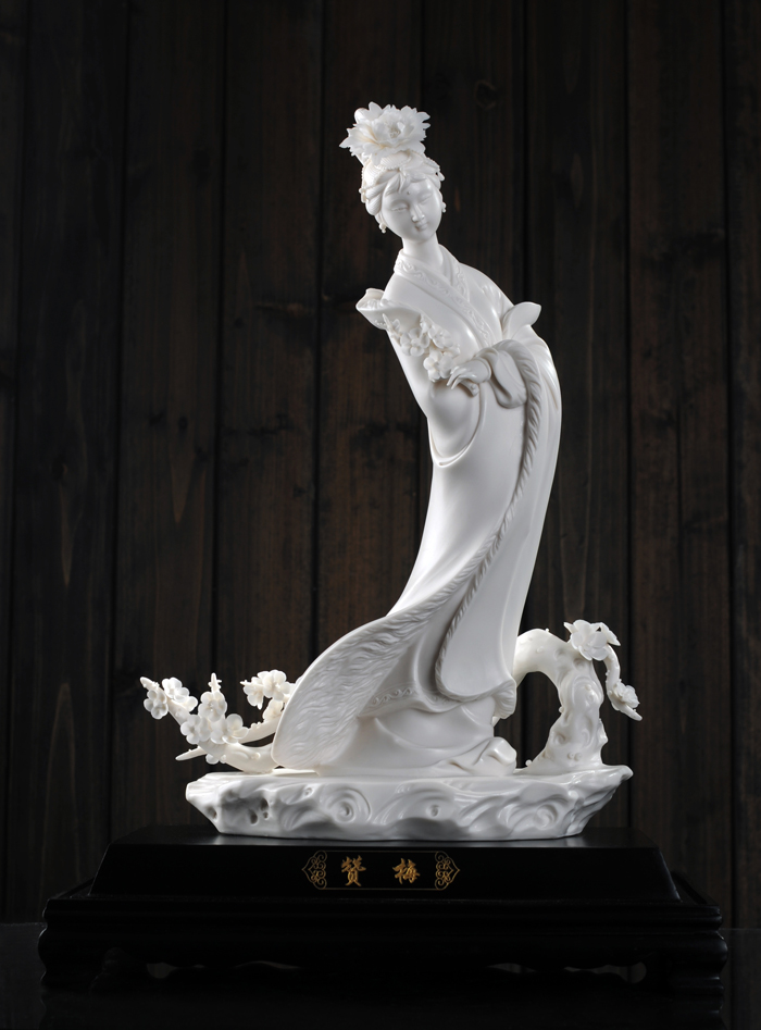作品簡介:作品《贊梅》造型生動,比例合理,表情豐富,線條柔美,作品以形寫神,形神兼?zhèn),氣韻生動,人物宛然如生、呼之欲出。?xì)膩的瓷質(zhì)烘托出人物的精神氣質(zhì)和內(nèi)在性格。人物細(xì)膩生動、豐肌秀骨,并且運(yùn)用雍容華貴的考究服飾展現(xiàn)女性熱愛美追求美的唐代特點(diǎn)。從作品的造型上,我們能看到柔麗雅致與女性美的內(nèi)在得到了統(tǒng)一,其所透溢出來的經(jīng)典氣度和高雅格調(diào)是一目了然的。