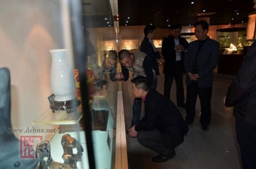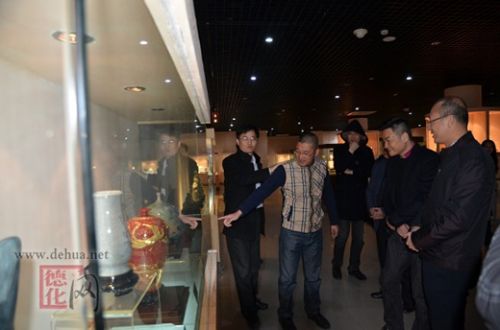 在縣領(lǐng)導(dǎo)黃耀昆、廣電局負(fù)責(zé)人林合虎及德化窯“富貴紅”品牌創(chuàng)始人徐少東的陪同下,李佳明興致勃勃地參觀了德化陶瓷博物館,他對德化陶瓷的輝煌歷史和深厚的工藝文化底蘊(yùn)贊嘆不已,而當(dāng)他面對“中國瓷圣”明朝德化窯的代表人物何朝宗的作品時(shí),更是感慨萬千。對于當(dāng)代德化陶瓷工藝的創(chuàng)新發(fā)展同樣投以極大的關(guān)注,當(dāng)他看到曾在多個(gè)國事活動(dòng)場合作為國賓禮品的富貴紅陶瓷藝術(shù)品《天地方圓》時(shí),駐目許久,倍加贊譽(yù):不愧為是一件好作品。