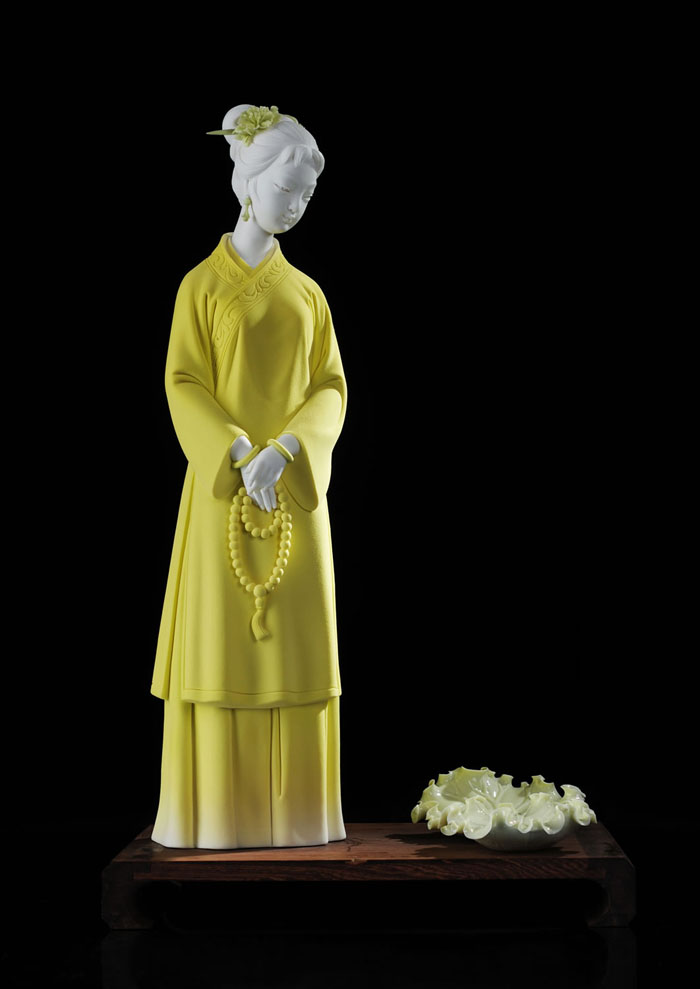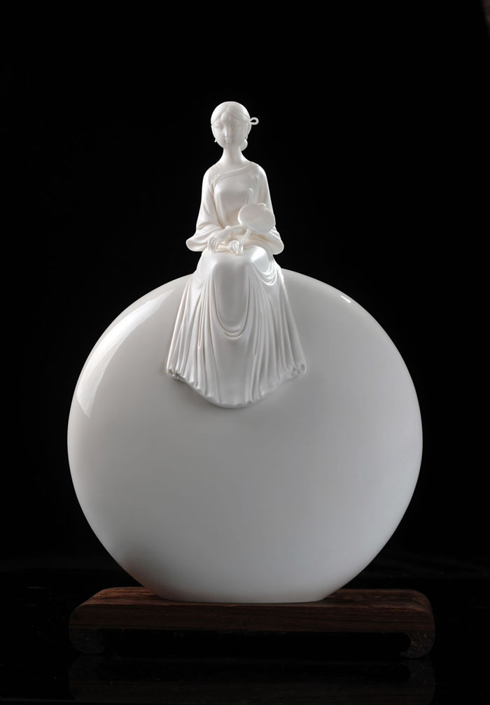 將在展出的作品中,一件由許氏第六代傳人、中國(guó)工藝美術(shù)大師許興泰之子——許瑞卿帶來(lái)的代表作品,實(shí)心雕塑《貴妃醉酒》,品其立意,許瑞卿奇妙的構(gòu)思與思維值得欣賞。尤其是絕妙地借助了在捏、塑、雕、鏤、貼、接、推、修的過(guò)程中的變換所形成的氣象,貴妃那與整體造型構(gòu)成相輔相成、意趣橫生的細(xì)節(jié),都妙造了體、面、線、點(diǎn)的手藝美和形式美,剛?cè)嵯酀?jì)、靜中寓動(dòng)。作品實(shí)心制作,燒成難度非常高,是非常難得的佳作
