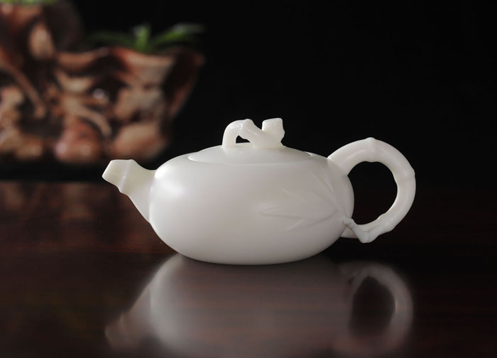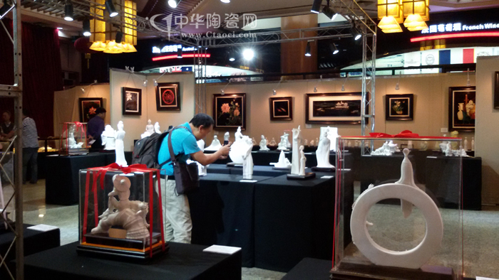 在本次展出的作品中,還有一大亮點(diǎn),由高級(jí)工藝美術(shù)師曾逸騰帶來(lái)的手工玉瓷壺、玉瓷杯系列作品,其所創(chuàng)作的玉瓷系列作品,采用上等稀有原礦德化白瓷泥(每噸瓷泥達(dá)幾萬(wàn)至十幾萬(wàn)元),經(jīng)70多道手工藝制作,在1300多度高溫下燒制而成,瓷壺白如雪、潤(rùn)如玉,白度達(dá)95%以上,燈光下瓷質(zhì)非常通透,具有較高的收藏鑒賞價(jià)值。