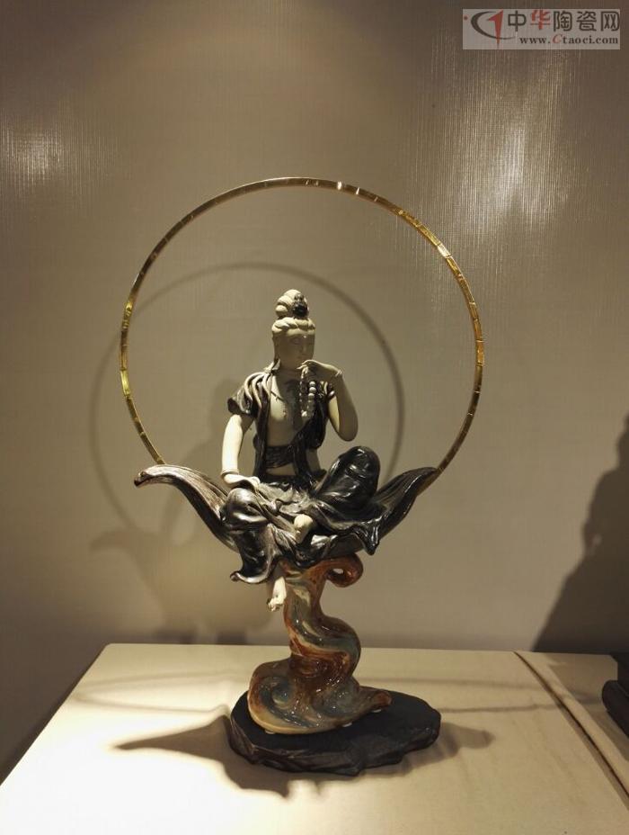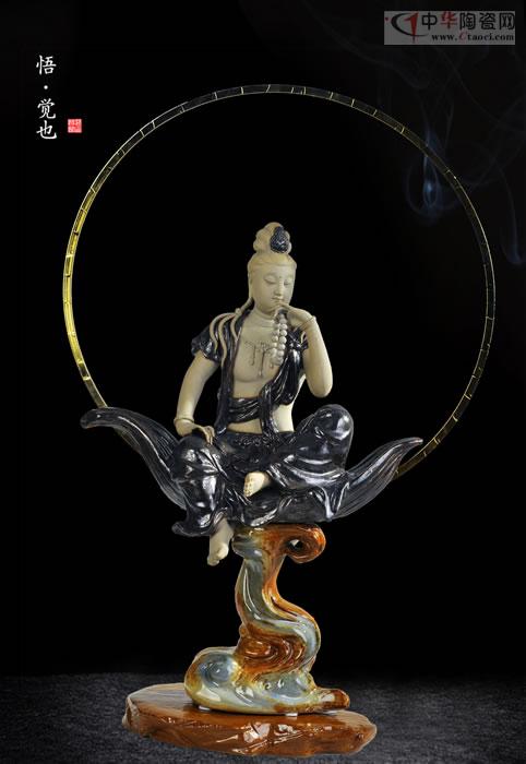 “這尊祥云觀音在2012年11月榮獲中國上海國際藝術(shù)節(jié)第十四屆中國工藝美術(shù)大師精品博覽會暨《中國工藝美術(shù)藝術(shù)優(yōu)秀作品評選》金獎,是我們在色釉料配方研發(fā)創(chuàng)作出的又一件精品之作。”坤恒工藝品有限公司總經(jīng)理柯國鎮(zhèn)告訴我們。