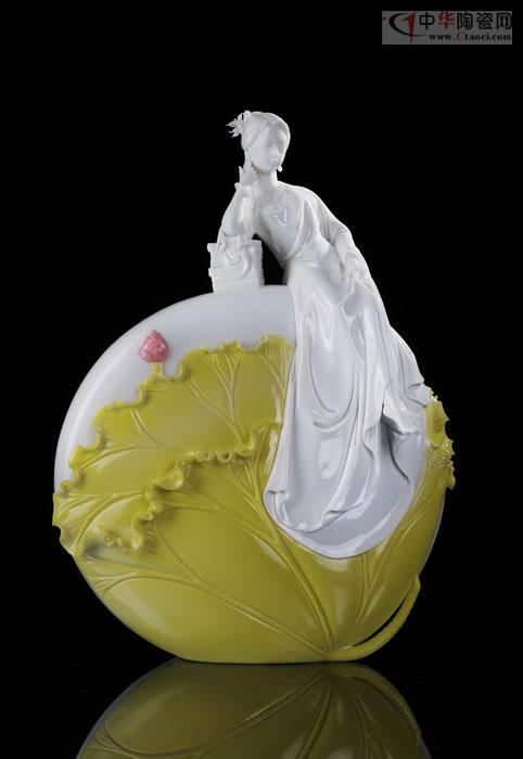 作品瓷質(zhì)細(xì)膩,工藝精湛,女子五官精致,眉清目秀,神情悠閑,似漫步在荷塘間,目光凝視前方,任由思緒飛揚(yáng);仿佛己漂浮在荷葉之上,忽略了過往;忽略了生活的紛雜、忙碌的流淌……。作者陳麗玲系百年陶瓷世家昌德陶瓷第三代傳人,作品手刻簽名,全球限量發(fā)行,極具收藏價(jià)值。