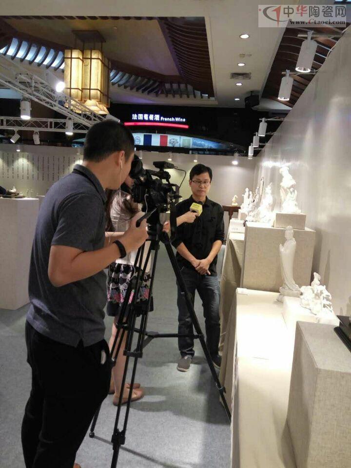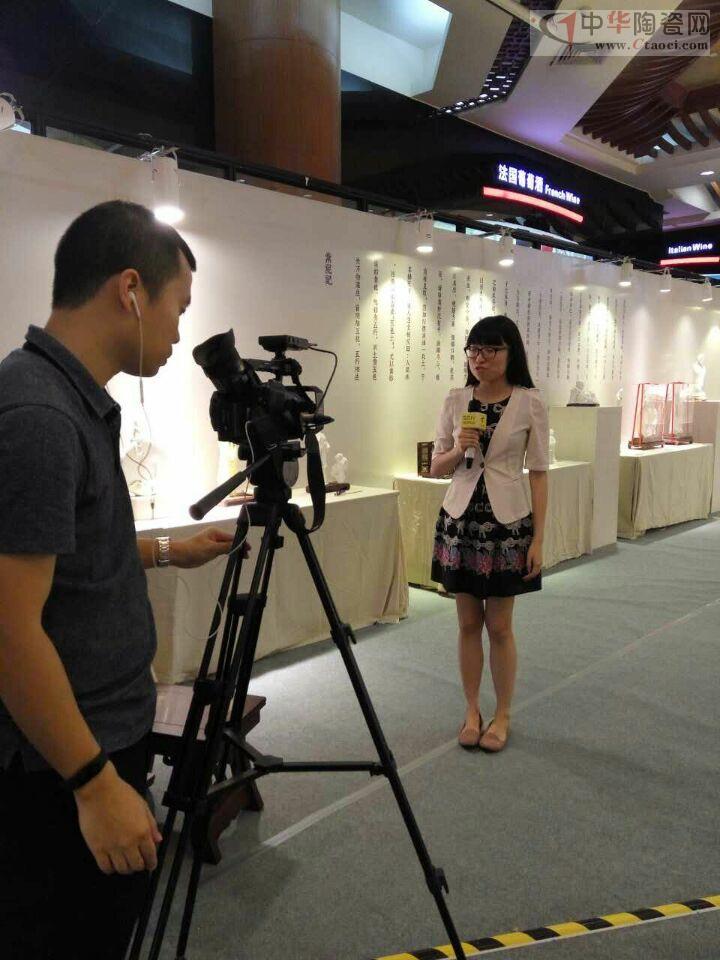 中華陶瓷網(wǎng)總經(jīng)理(右一)正在接受記者采訪