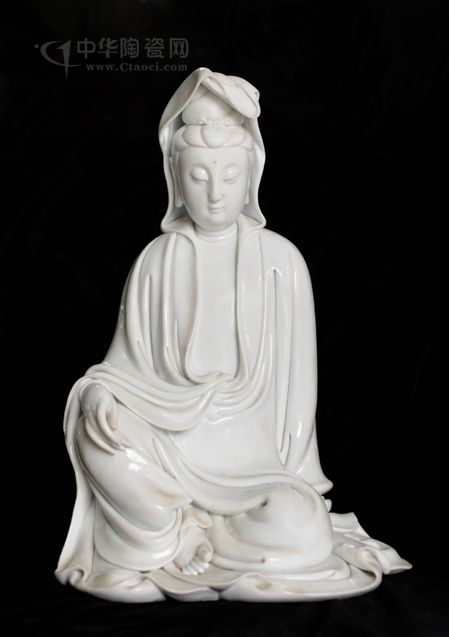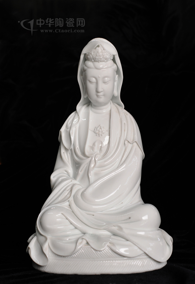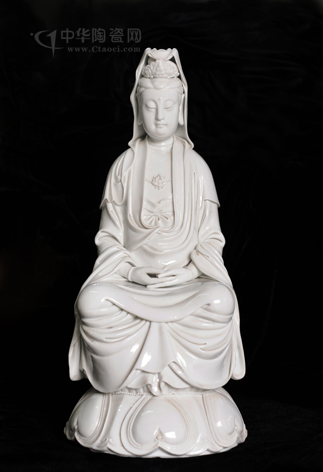 蘇國良專注從事陶瓷佛像創(chuàng)作,特別對何派觀音佛像頗有研究,蘇國良所塑的觀音佛像,造型精準,開相豐腴且生動,將氣定神閑的神情表現(xiàn)得淋漓盡致,既端莊又肅穆,形神兼?zhèn),又富有人情味。衣褶紋理疏密有致,刀法犀利流暢,既有泥的柔度,又有鐵線的力度工藝精湛。
