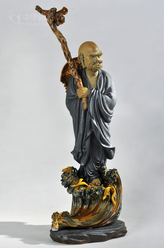 簡介:創(chuàng)作手法隨性、寫意,特別在達摩神態(tài)的雕刻上,熔和了傳統(tǒng)雕刻技法與現(xiàn)代繪畫理念,將達摩一葦渡江的堅毅,一心悟禪的決心生動地表現(xiàn)出來。作品具有很強的空間感、層次感,表現(xiàn)了高古的氣韻和深沉的精神內(nèi)涵。