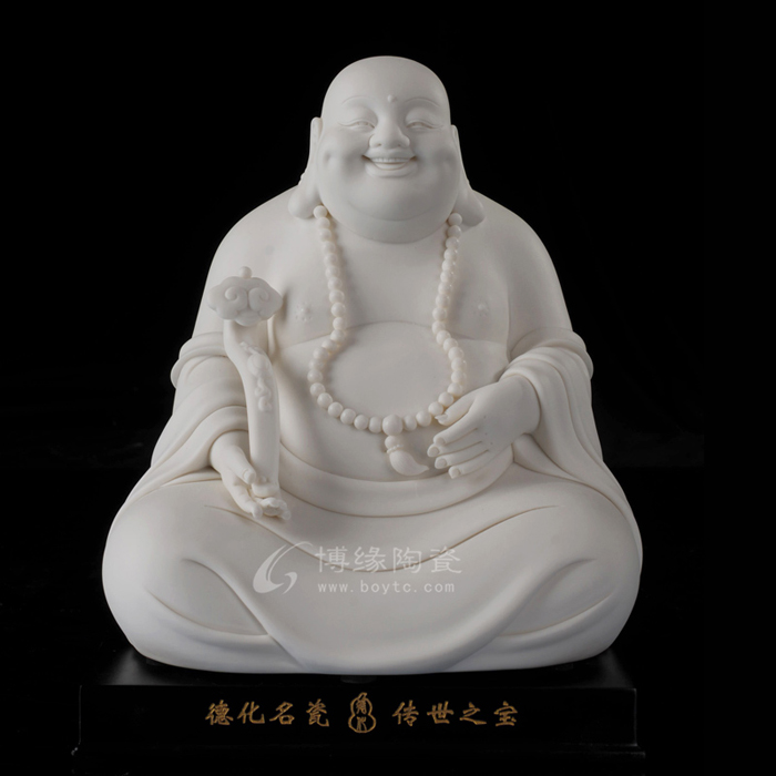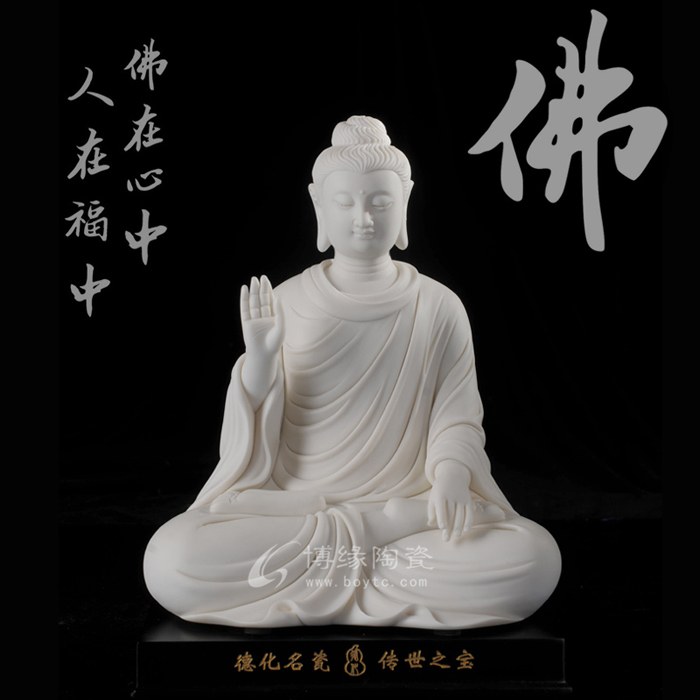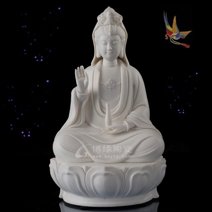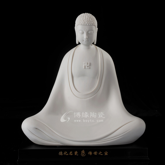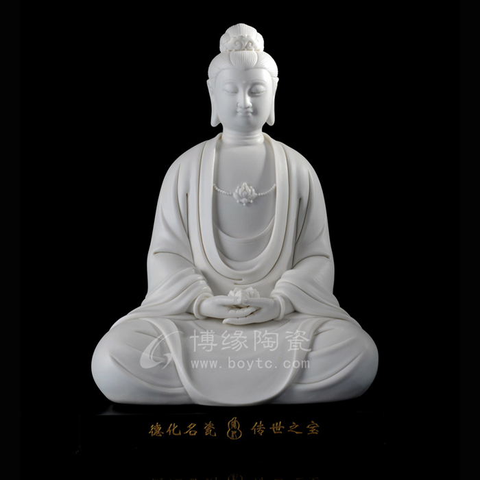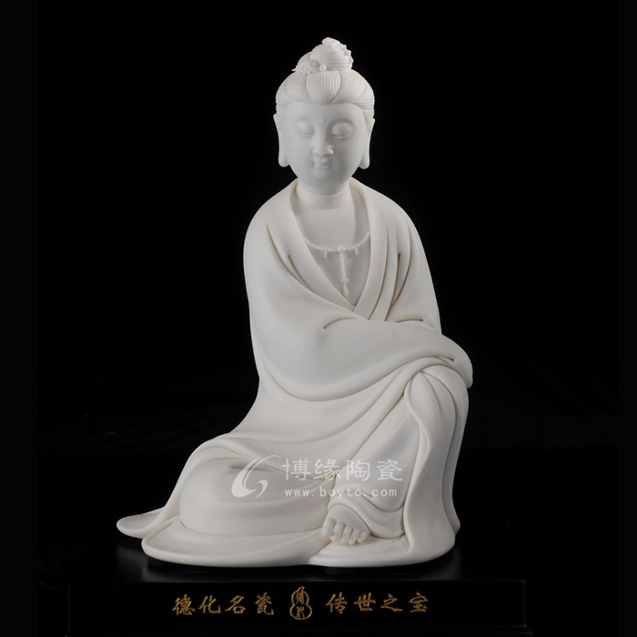 在追隨何朝宗藝術(shù)腳步的同時(shí),林建平也一直在尋找著突破。他努力把德化古代的制瓷工藝與自我凈心感悟的思想有機(jī)結(jié)合,展現(xiàn)當(dāng)前審美的簡約風(fēng)格。廣受歡迎的《瓷韻觀音》和《持蓮觀音》便是這種創(chuàng)新的代表作,從傳統(tǒng)工藝中走出的新的審美理想,照樣創(chuàng)造出佛像的莊嚴(yán)、肅穆、慈悲、大愛。