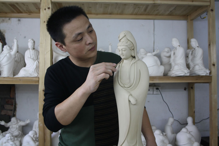 宗教雕塑第一人、明代陶塑家何朝宗是德化窯的代表性人物,是德化陶瓷人心中的祖師爺,其高超的陶瓷工藝仍流傳于世,F(xiàn)今,延續(xù)何派風(fēng)格的工藝藝人仍數(shù)不勝數(shù),林建平就是其中一位。