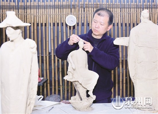 近日,記者走進(jìn)德化瓷言坊,中國(guó)工美行業(yè)藝術(shù)大師顏松柳正在精心創(chuàng)作《觀自在》作品,只見觀音面容清瘦略帶微笑,造像線條簡(jiǎn)練,彰顯魏晉風(fēng)格。在展廳一個(gè)角落里,記者見到《禮·樂》作品。提及這件作品,顏松柳仍記憶猶新。那是2013年12月在德化舉行的福建省陶瓷現(xiàn)場(chǎng)技藝大賽,來自省內(nèi)數(shù)百名參賽者,只角逐一個(gè)獎(jiǎng)項(xiàng)——“福建省五一勞動(dòng)獎(jiǎng)?wù)?rdquo;。在規(guī)定的時(shí)間內(nèi),眾人矚目下,從泥塑到瓷塑均要現(xiàn)場(chǎng)完成。