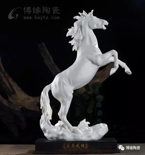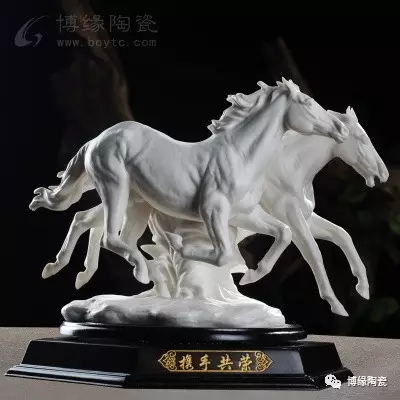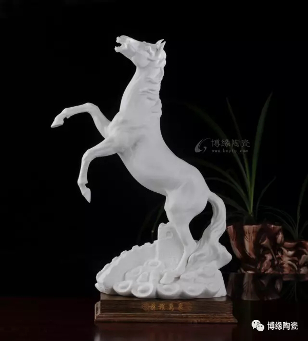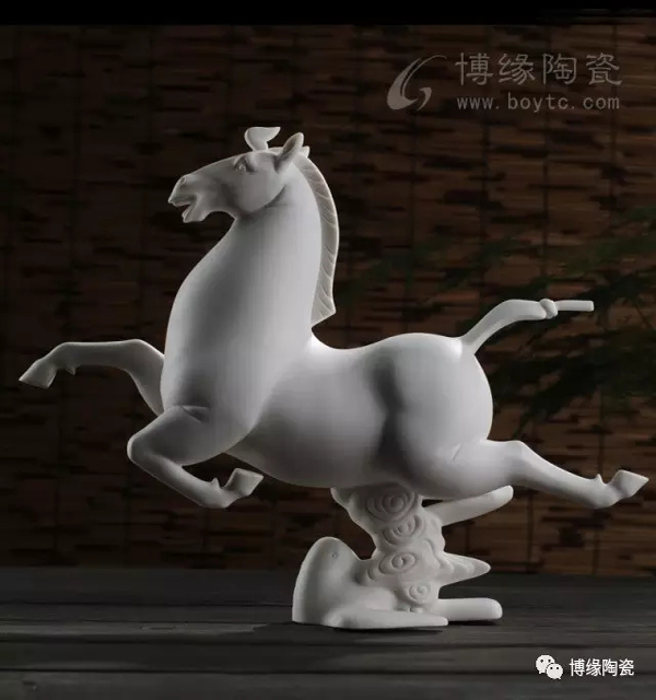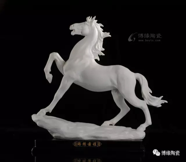 由于德化瓷泥含鐵高,白度好,可塑性強(qiáng),故適合各種瓷塑,以瓷塑馬也是歷代及當(dāng)代德化陶瓷中常見(jiàn)題材之一,在當(dāng)代德化瓷壇中有部份藝術(shù)家以塑馬最為有名,其所塑瓷馬有以寫(xiě)實(shí)手法創(chuàng)作,勢(shì)雄壯,四蹄生,所到細(xì)節(jié)無(wú)不體現(xiàn)作者的匠心獨(dú)具,以下為部份精品瓷馬欣賞: