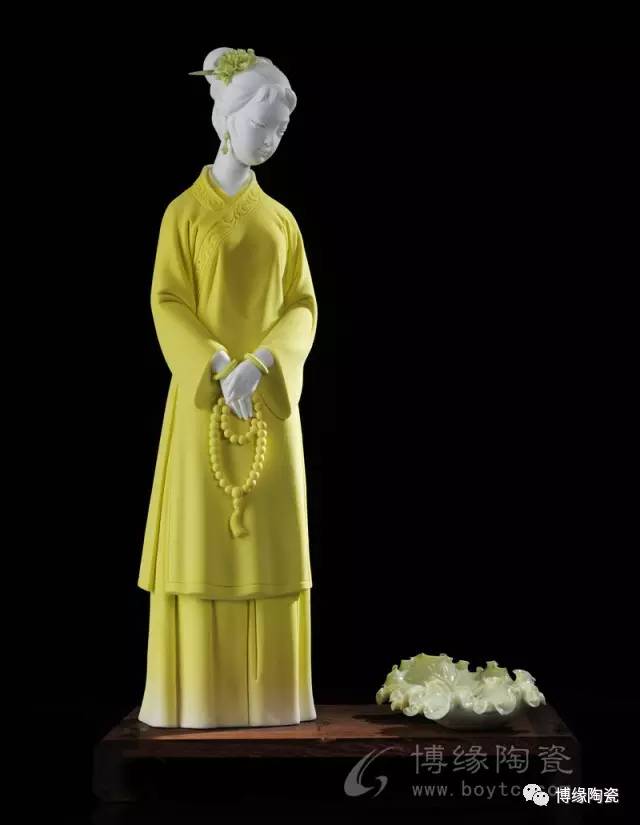 “仕女”是人物類陶瓷作品常見的題材之一,“仕女”本意是指官宦家的女子,而在工藝美術(shù)中是泛指所有古裝青年女子。還有別稱為“美女”或“古美”,即古代美人。這一名稱包括了我國(guó)神話傳說、歷史傳記和小說戲曲中的古裝女子形象,比如“嫦娥”、“西施”、“楊貴妃”、“王昭君”以及《紅樓夢(mèng)》中眾多的女子等等,都是膾炙人口的、為大眾所喜聞樂見的仕女題材。