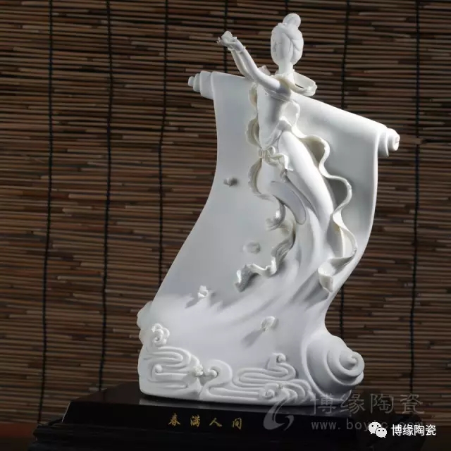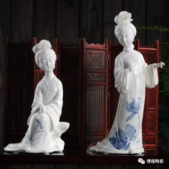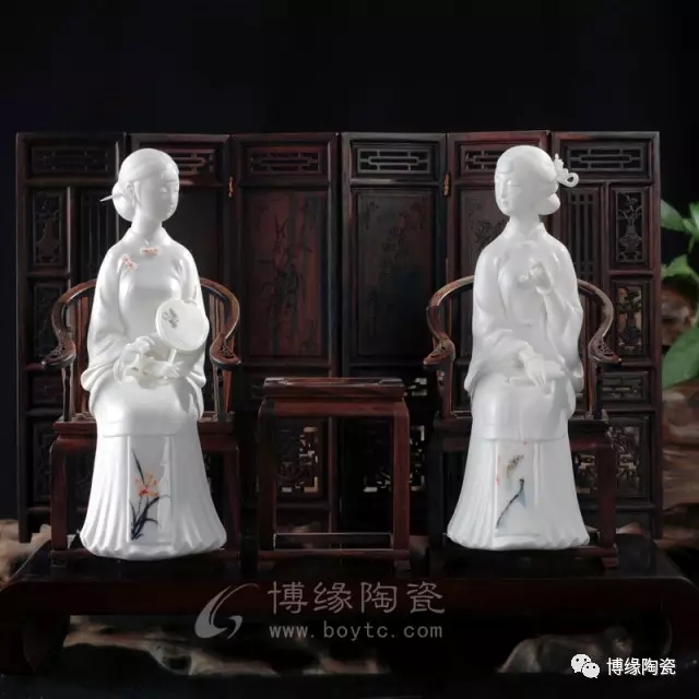德化陶瓷作品創(chuàng)作題材豐富,其中仕女也是一大題材之一,自古以來,以四大美女、唐清仕女等人物創(chuàng)作的作品比比皆是。因德化白瓷細(xì)膩,可塑性強(qiáng),適合仕女作品創(chuàng)作,所創(chuàng)作品人物傳神,雕刻精細(xì)。