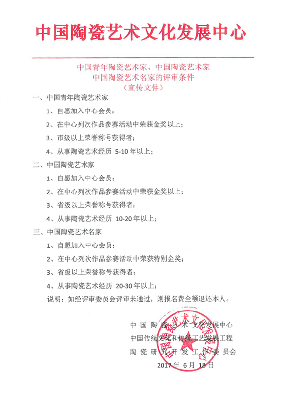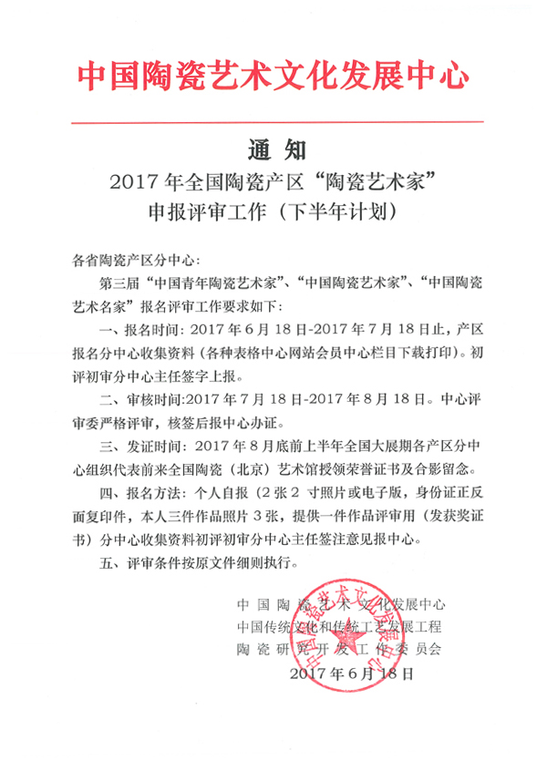 2017年全國陶瓷產(chǎn)區(qū)“陶瓷藝術(shù)家”申報(bào)評(píng)審工作(下半年計(jì)劃)