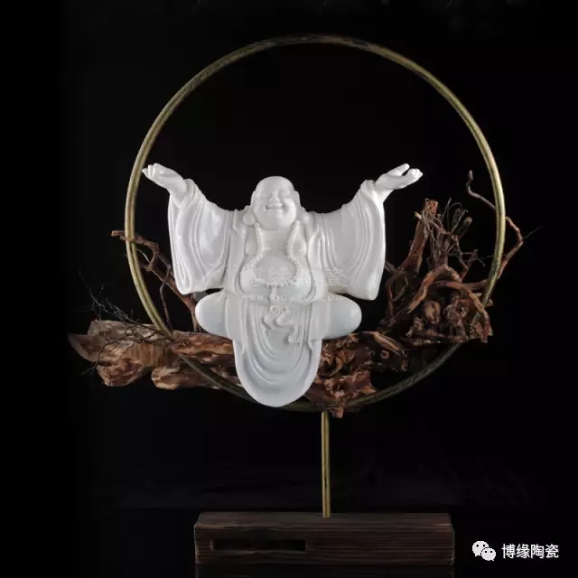 巧用溫潤如玉的“中國白”與古樸典雅的根雕搭配,營造出一種安靜祥和的氛圍。所謂大肚能容天下難容之事,笑口常開,笑天下可笑之人。彌勒坦腹趺坐,腰肢粗大,笑口常開,神情溫和,那愉快的形象和表情都會讓每一個見到他的人忍俊不禁。