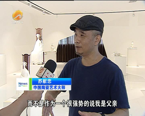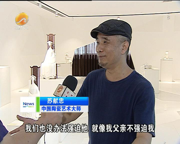 蘇獻(xiàn)中是“蘊玉瓷莊”的第四代傳人。創(chuàng)立者,其太祖父蘇學(xué)金大膽打破傳統(tǒng)瓷雕技藝桎梏,1915年《瓷梅花》在巴拿馬萬國博覽會上榮獲金獎,祖父蘇勤明,藝術(shù)構(gòu)思敏捷,瓷雕技術(shù)全面,曾于1957年出席全國第一次工藝美術(shù)藝人代表大會。先后就讀于景德鎮(zhèn)陶瓷學(xué)院、清華工藝美術(shù)學(xué)院的蘇獻(xiàn)忠在德化這座以民間瓷塑為主的瓷都里算是學(xué)院派了。剛開始,他對于父親蘇玉峰那種沒有精確比例,沒有緊密結(jié)構(gòu),也沒有形式邏輯的“吳帶當(dāng)風(fēng)”藝術(shù)風(fēng)格很不以為然,以西方現(xiàn)代的寫實手法創(chuàng)作了不少瓷塑作品。對此,父親卻從來不說什么。