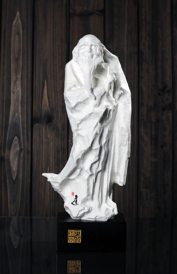 鄭志德代表作品,獲美國巴拿馬一百周年慶典優(yōu)秀藝術家作品獎,作品工藝精甚,大師手筆,化繁為簡,簡約而不簡單,臉上皺紋清晰自然,老子形象逼真?zhèn)魃。作品富有?chuàng)意,以巖石為身,引申出并強調(diào)了老子的言論:道法自然。