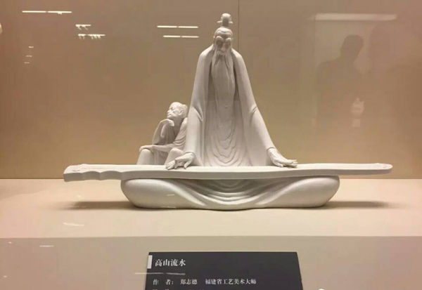 《高山流水》是鄭志德代表作品,作品手刻簽名,作品被評(píng)選為福建省現(xiàn)代陶瓷精品金獎(jiǎng),被福建博物院、韓國(guó)江原大學(xué)永久收藏,伯牙端坐撫琴,子期坐在近旁側(cè)耳聆聽(tīng)。作品著重塑造了伯牙形象,創(chuàng)造性地將其前身置空,長(zhǎng)胡須自然下垂,與衣服融合一體,呈現(xiàn)出流水狀態(tài),大膽灑脫,渾樸大氣,三角造型厚重典范,大寫(xiě)意的手法表現(xiàn)出賢德之人的品德。