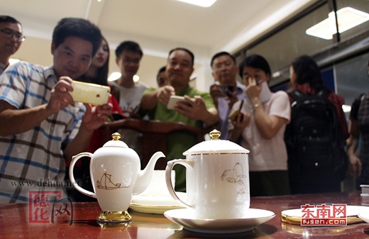 亮相金磚廈門會晤的德化陶瓷吸引了采訪團(tuán)圍觀拍照。