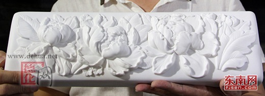 裝飾在鳳凰廳主背景墻上的德化陶瓷條的組件。