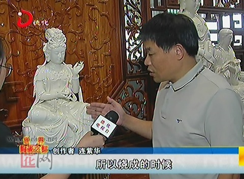 鏡頭前這尊精美的白瓷雕塑就是獲得一等獎(jiǎng)的作品《仿宋木雕觀音》,是陶瓷藝術(shù)大師連紫華在2014年幾經(jīng)周折才創(chuàng)作而成的,取材于一尊宋代木雕觀音。