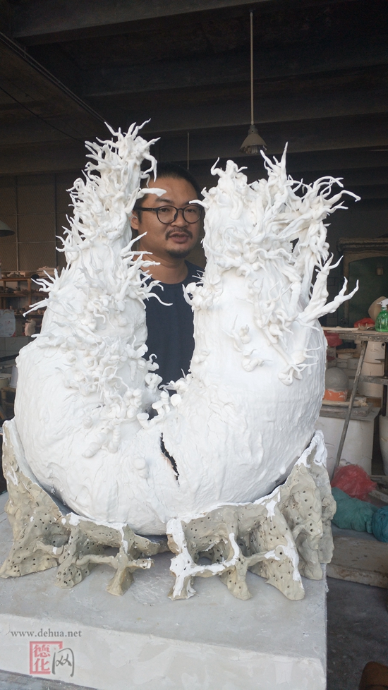 在德化進(jìn)行陶瓷創(chuàng)作已近八年的黃永星,是此次大賽的優(yōu)秀獎(jiǎng)獲得者。對(duì)于何朝宗作品的喜愛,促成了他此次獲獎(jiǎng)作品《何朝宗》的出現(xiàn)。