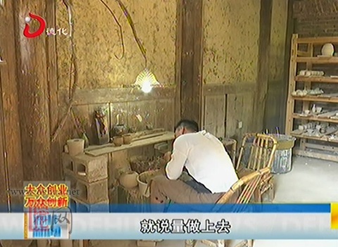 【同期聲 《見山》工作室負(fù)責(zé)人庹純陽:我是從湖南湘西過來的,因為我有一個同學(xué)他剛好是德化的,偶然的機會,在朋友的工作室,我接觸到手拉坯柴燒這一塊。剛開始接觸,就覺得好玩,然后經(jīng)過燒窯,這個泥巴它燒出來,能出彩萬千,那種變化,那種魅力,讓我下定決心來到德化做柴燒這一個事業(yè)!