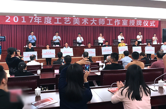 11月1日,2017年度工藝美術(shù)大師工作室授牌儀式在泉州市政府舉行,全市30個工藝美術(shù)大師工作室的領(lǐng)銜大師現(xiàn)場領(lǐng)取了工作室牌匾。其中,德化縣獲評9個,數(shù)量位居全市第一。獲命名的9個工作室分別是李國林、陳為坦、陳梗生、曾素妹、鄭建冰、孫敏強、林星育、林超程、陳行一的大師工作室,這標志著我縣工藝美術(shù)行業(yè)保護傳承和創(chuàng)新發(fā)展邁出了新的步伐。